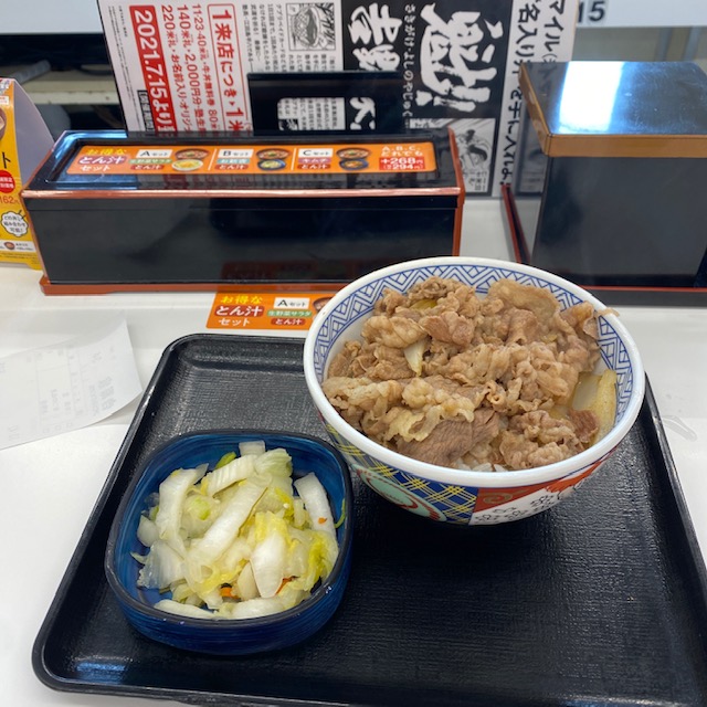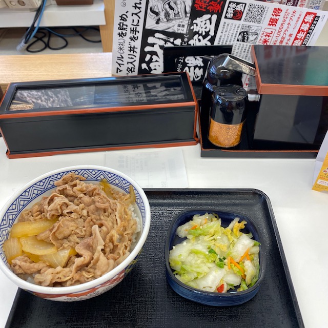 吉野家です。 自分でも思う。よく飽きないな、と。