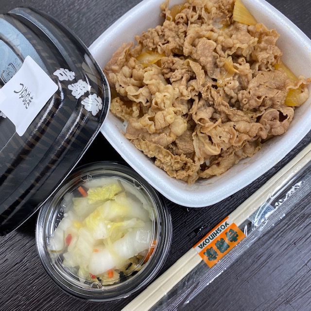 申し訳ない。 こんな日に牛丼です。