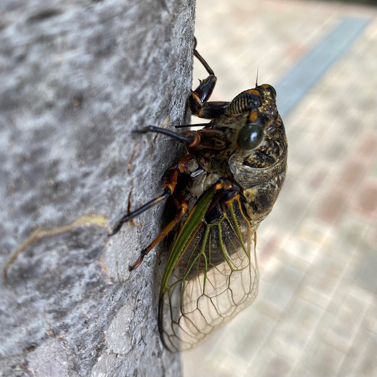 お食事中。 まったく逃げない。 しっかり口?を木の幹に刺している。