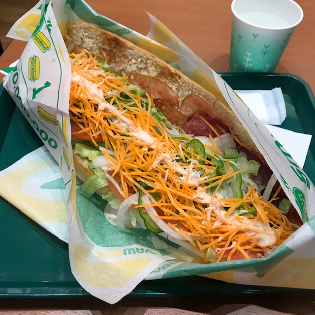 サブウェイです。 今年5回目ぐらいのはず。 BLTです。 フットロングです。カットはしないでください。 かじりつきました。